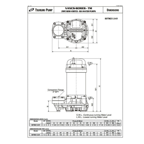 Tsurumi 80TM21.5 3/220-460V, titanium sump pump