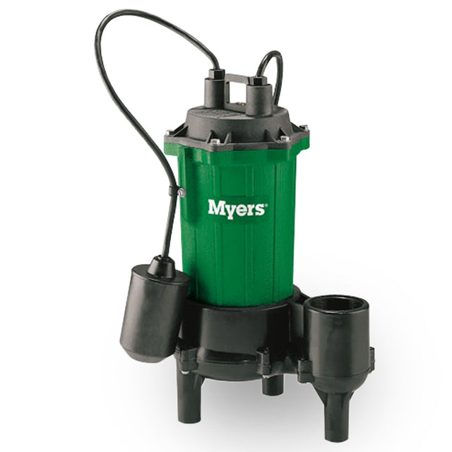 Myers CMV5 ½ H.P. 1/115V, submersible sewage pump with a 2” NPT discharge and a tethered float switch. Pump comprised of cast iron and high strength thermoplastic. Pump cord length is 20’